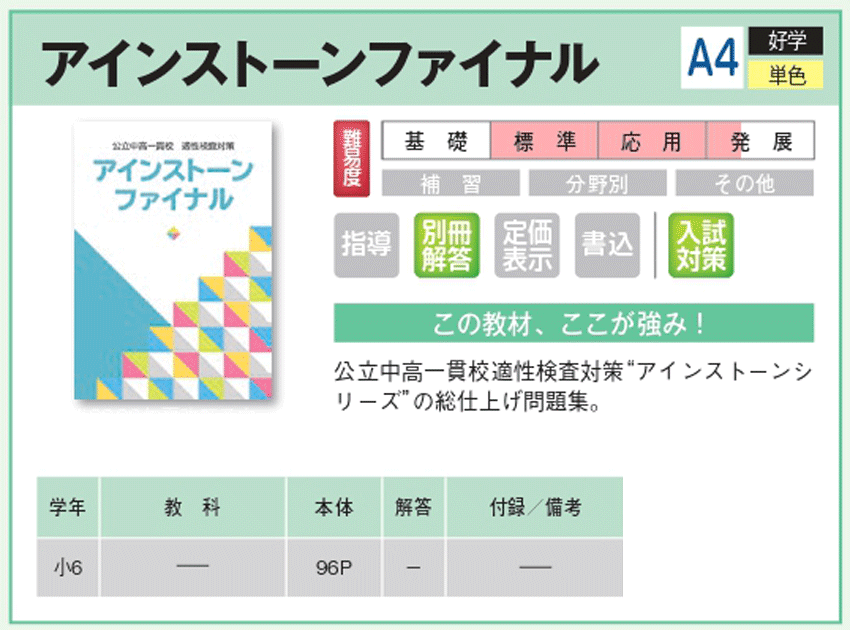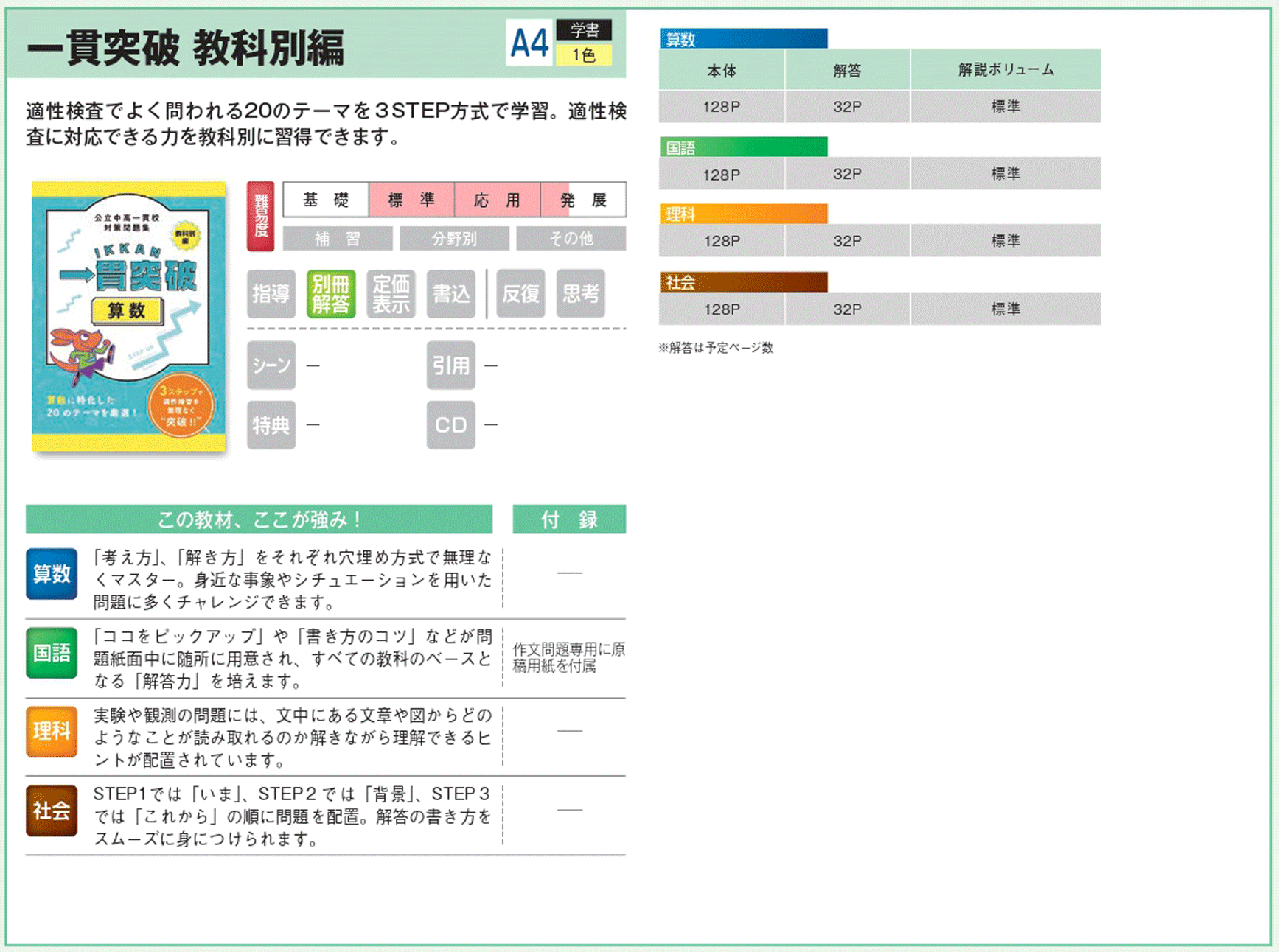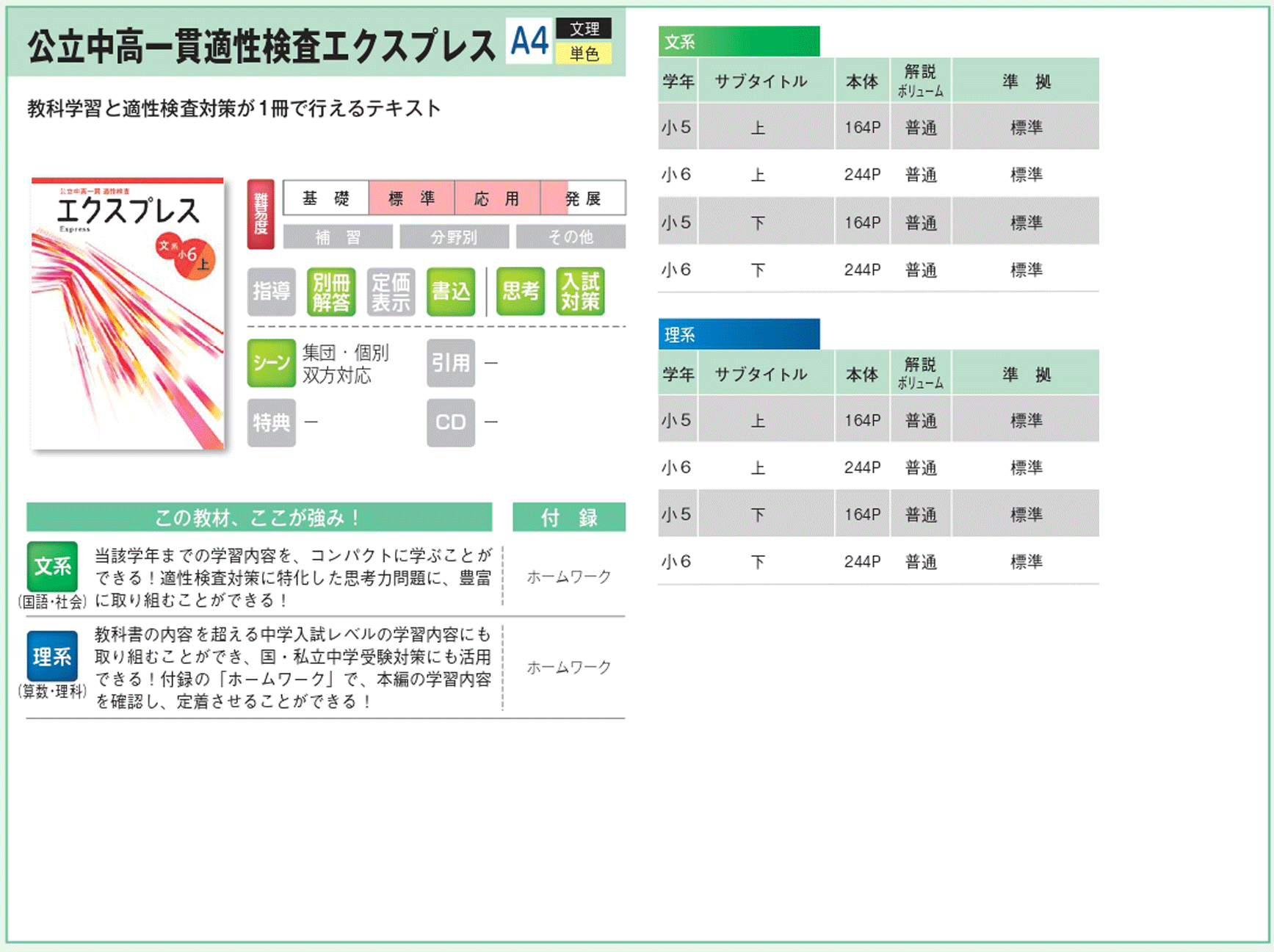 公立中高一貫適性検査エクスプレス 【教材詳細】 |