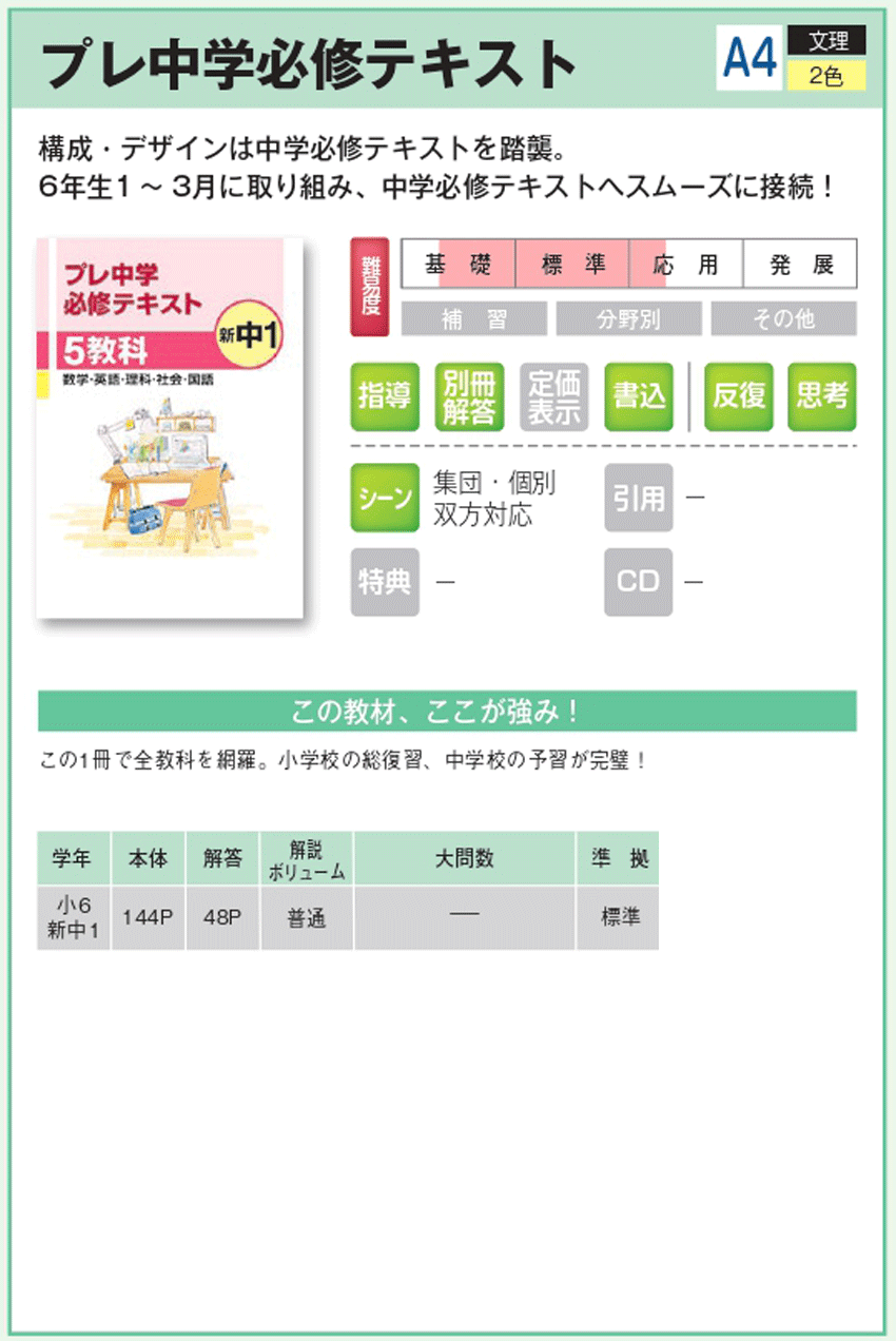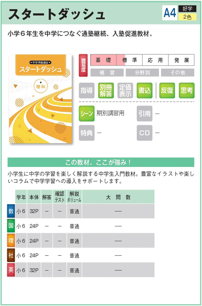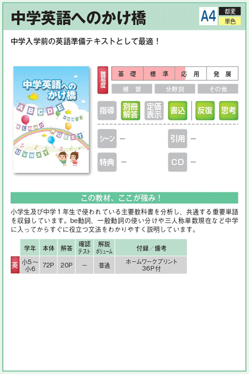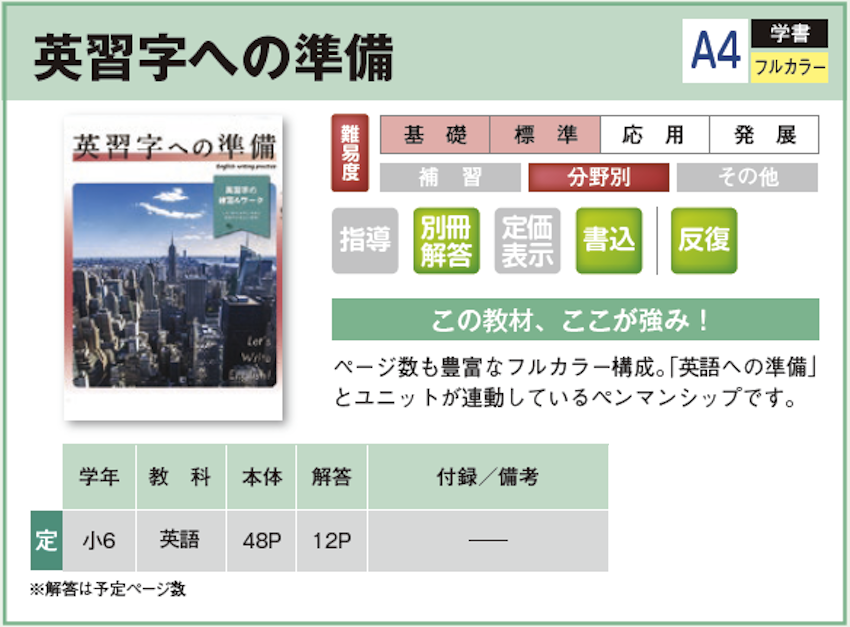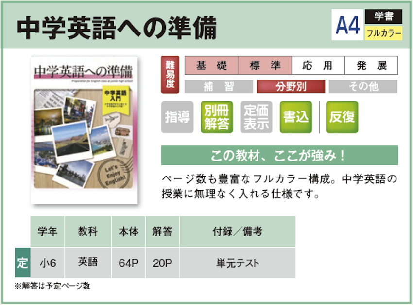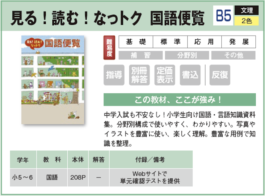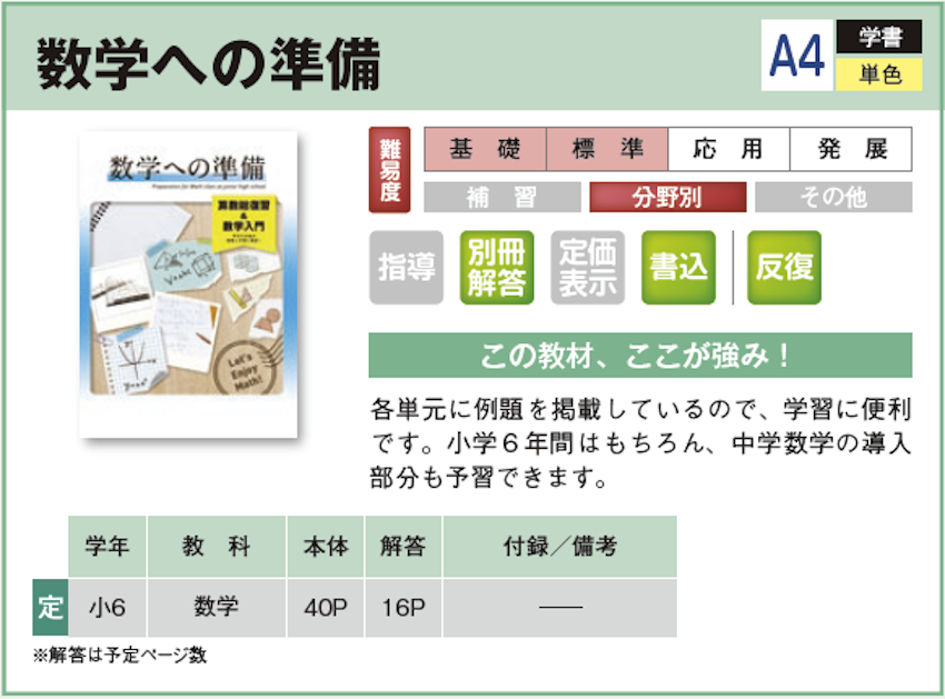 | 教材名 | 対応教科 | 難易度 | 利用シーン | 出版社 |
