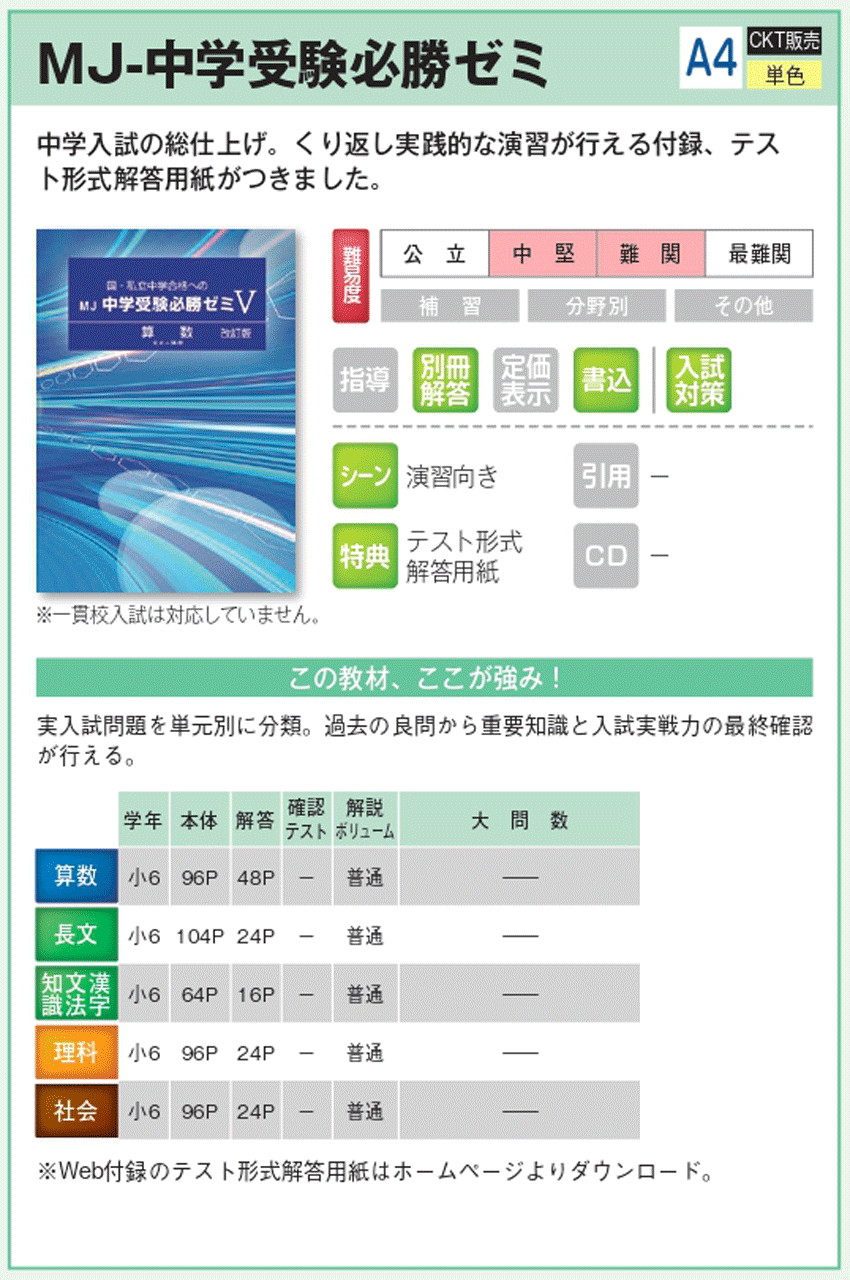 MJ-中学受験必勝ゼミ 【教材詳細】 |