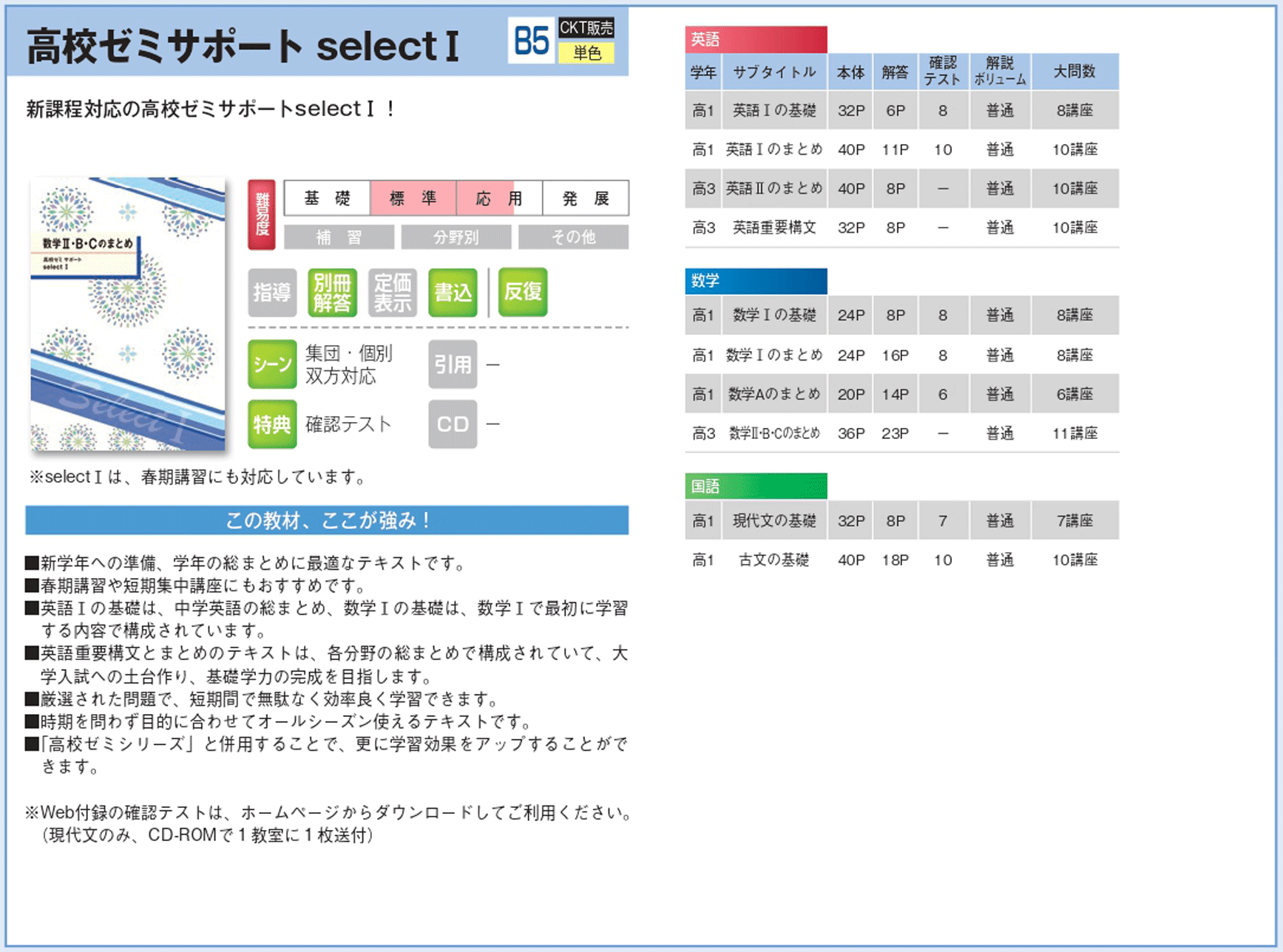 高校ゼミサポート selectⅠ 【教材詳細】 |