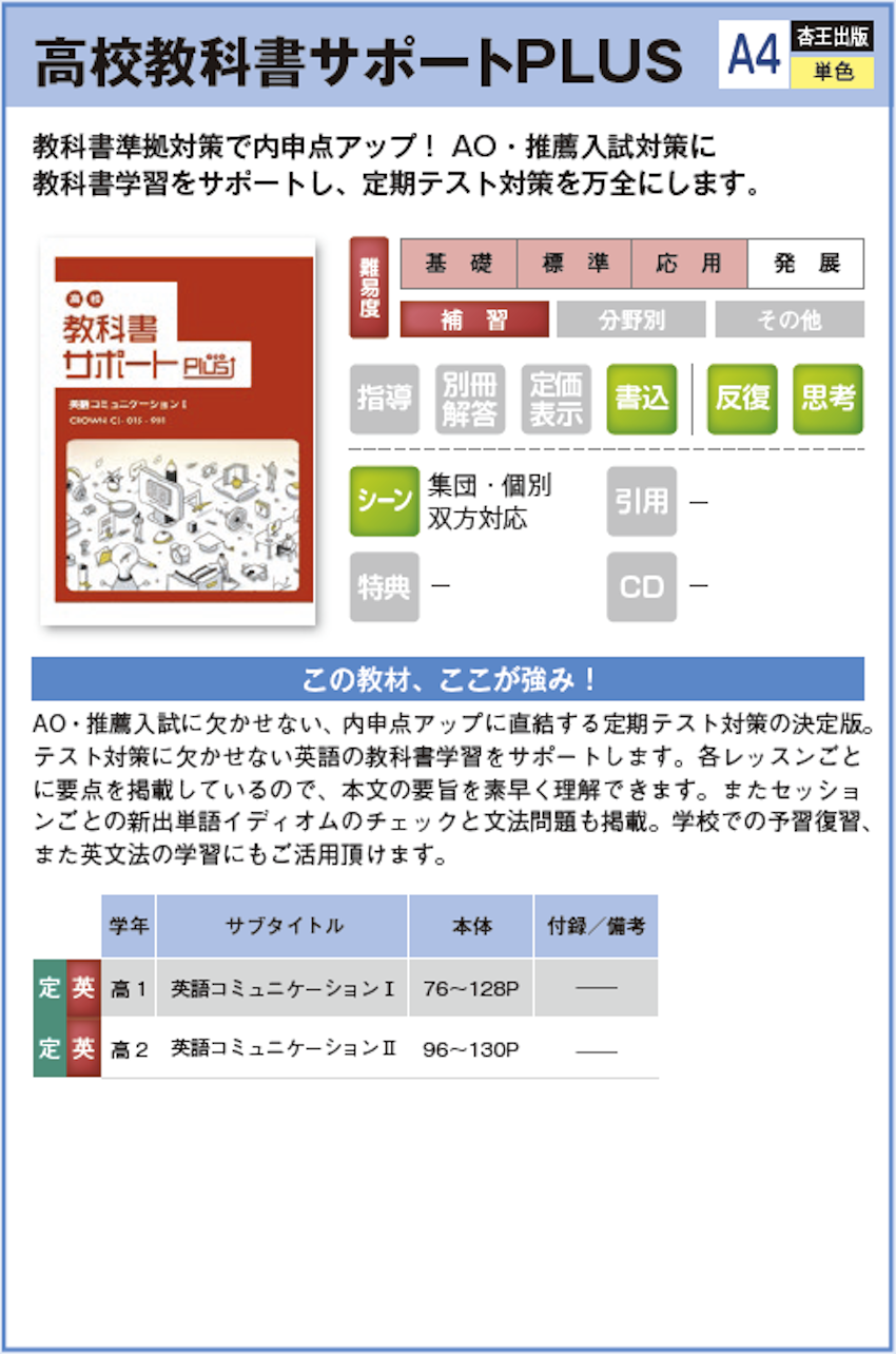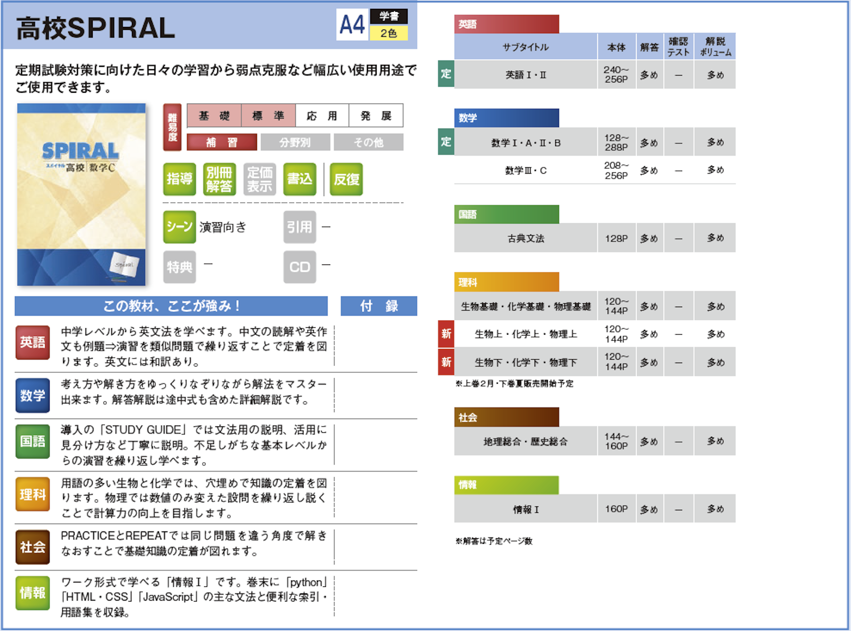 | 教材名 | 対応教科 | 難易度 | 利用シーン | 出版社 |