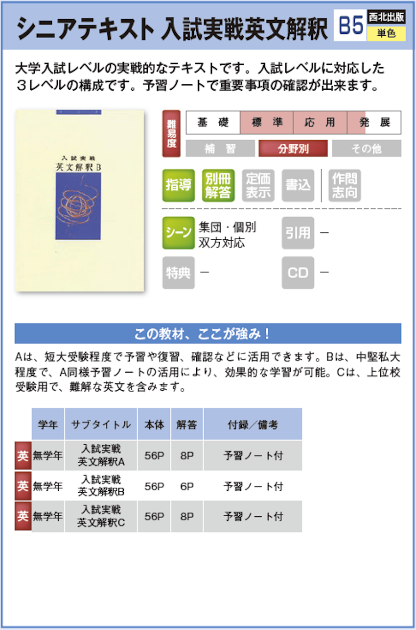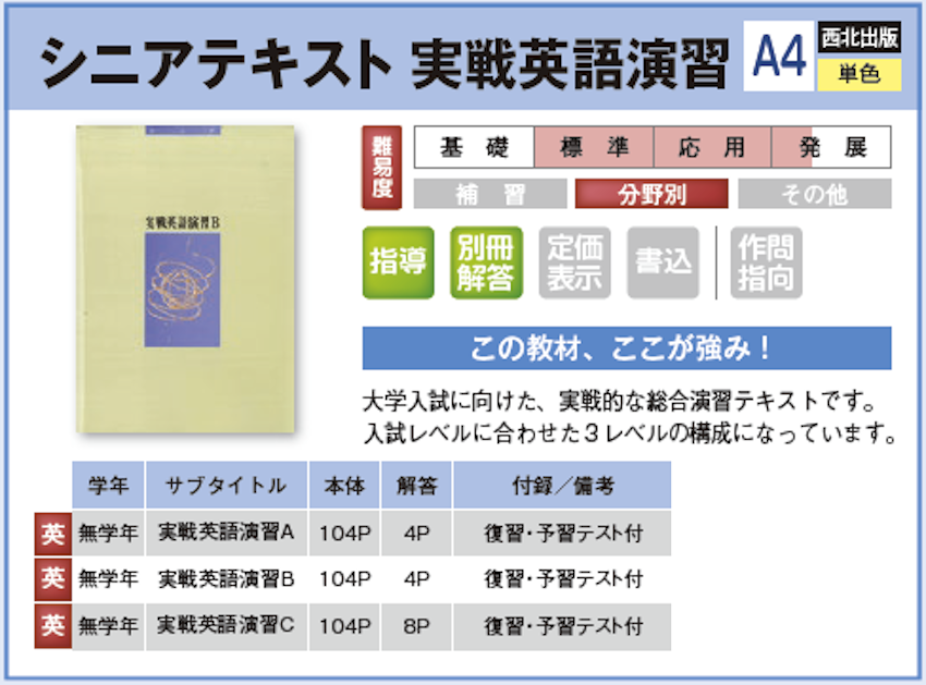 シニアテキスト 実戦英語演習 【教材詳細】 |