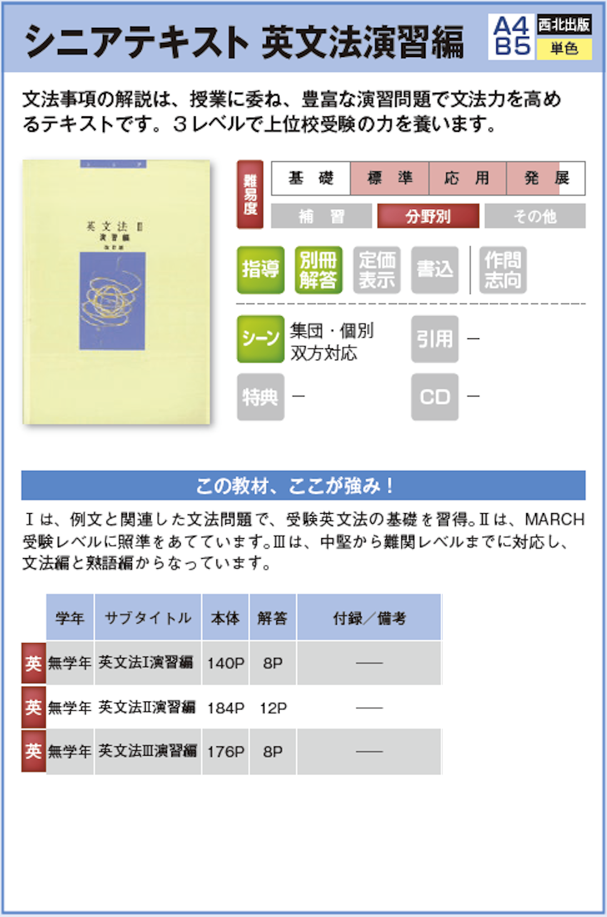 シニアテキスト 英文法演習編 【教材詳細】 |