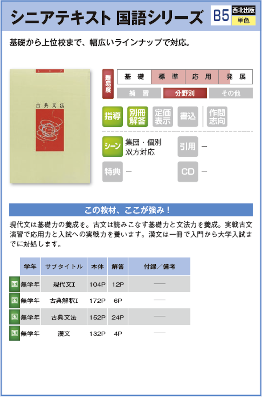 シニアテキスト 国語シリーズ 【教材詳細】 |
