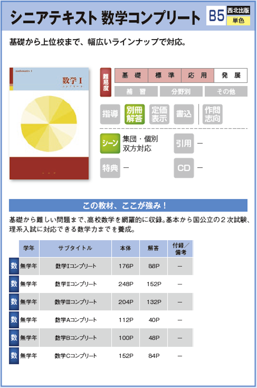 シニアテキスト 数学コンプリート 【教材詳細】 |