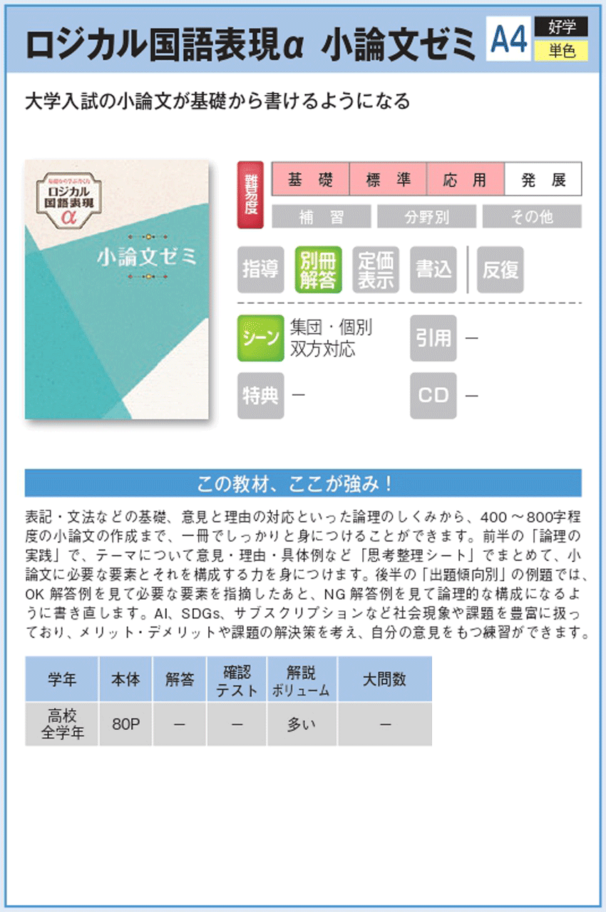 ロジカル国語表現α 小論文ゼミ 【教材詳細】 |