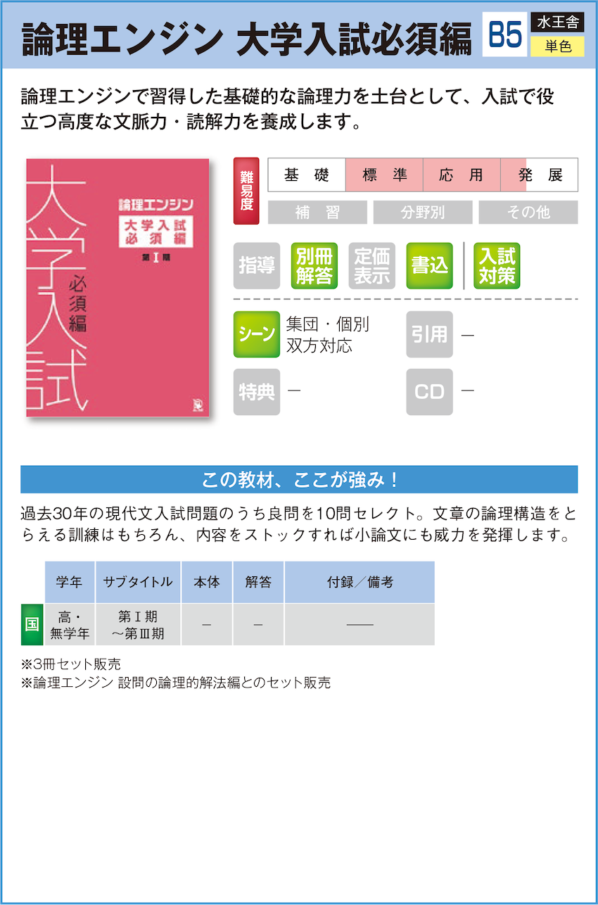 論理エンジン 大学入試必須編 【教材詳細】 |