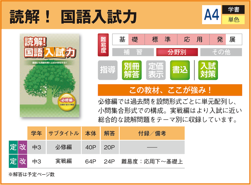 読解! 国語入試力 【教材詳細】 |