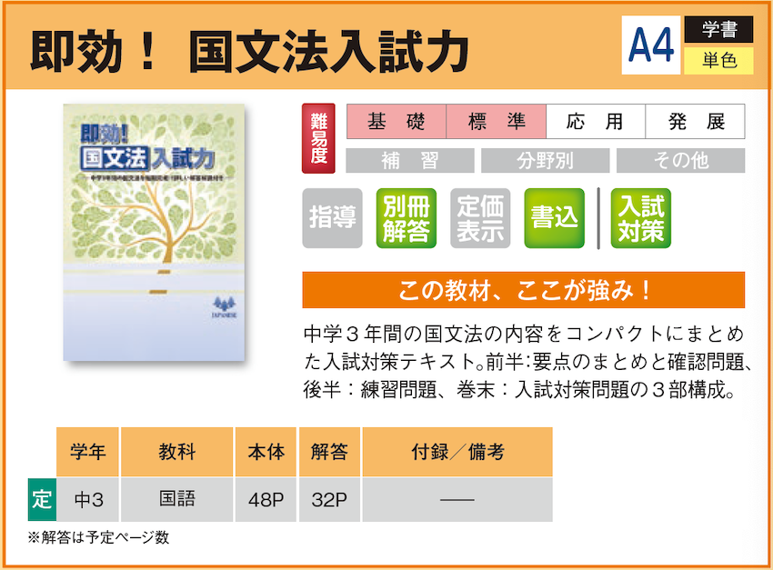 国文法の完成 (中学) 【教材詳細】 |