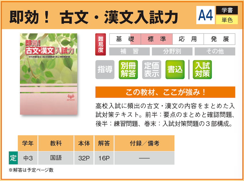 即効! 古文・漢文入試力 【教材詳細】 |