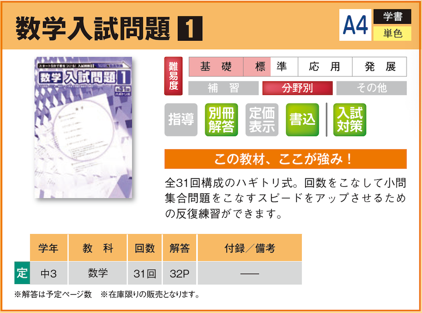 数学入試問題1⃣ 【教材詳細】 |