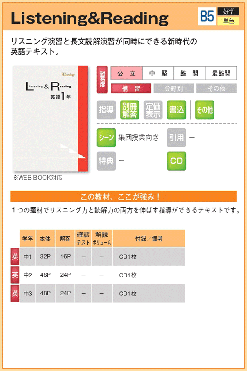 Listening & Reading 【教材詳細】 |