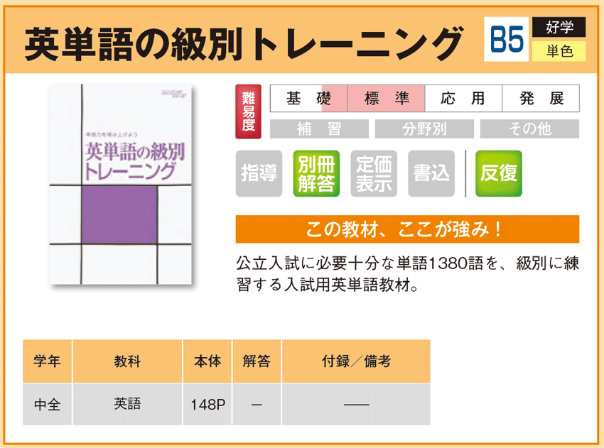 英単語の級別トレーニング 【教材詳細】 |