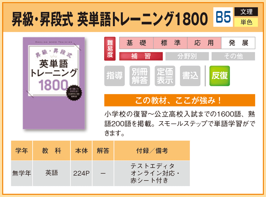 昇級・昇段式 英単語トレーニング1800 【教材詳細】 |