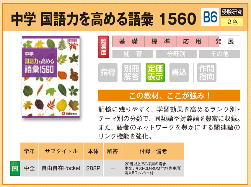 中学 国語力を高める語彙 1560 【教材詳細】 |