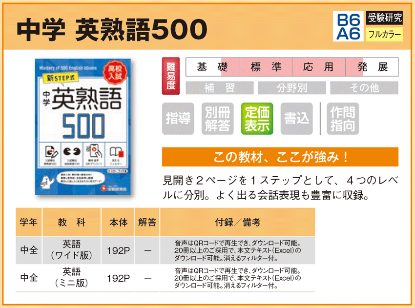 中学 英熟語500 【教材詳細】 |