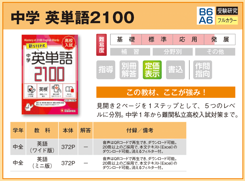 中学 英単語2100 【教材詳細】 |