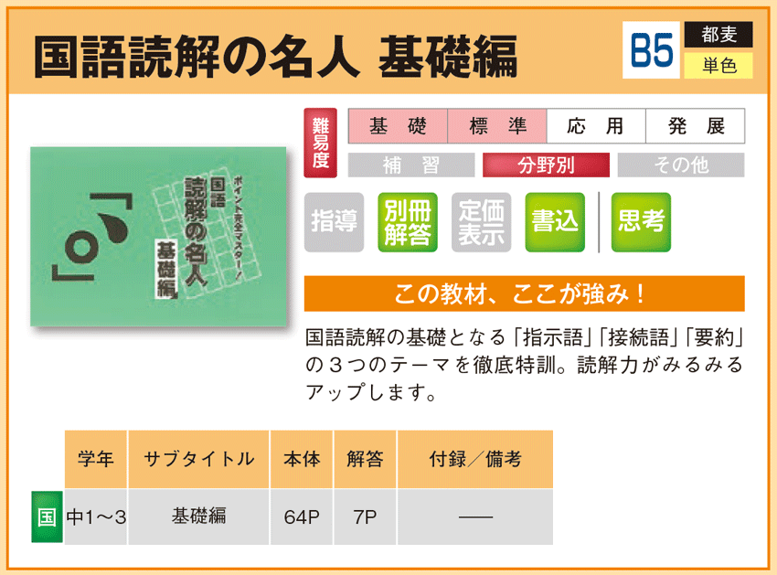 国語読解の名人 基礎編 【教材詳細】 |