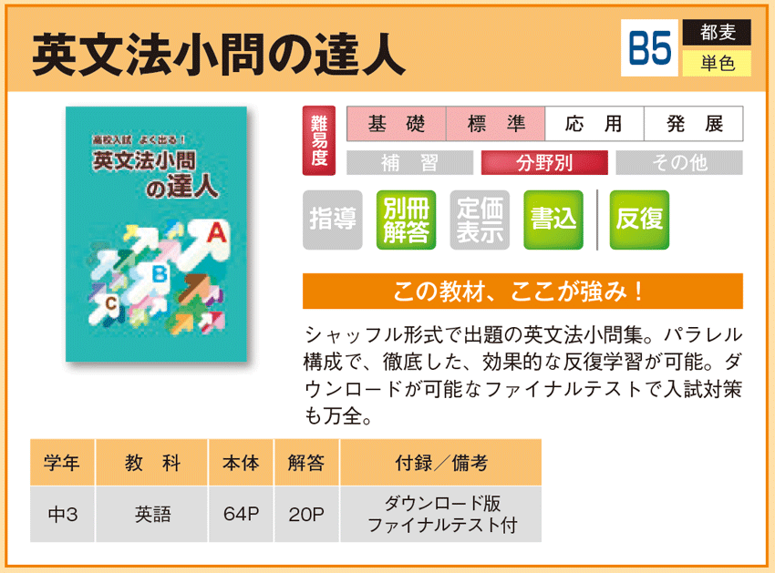 英文法小問の達人 【教材詳細】 |