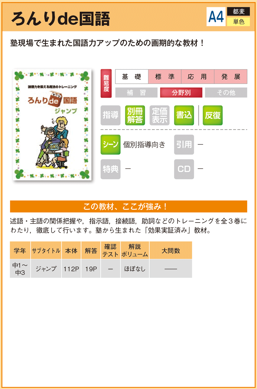 ろんりde国語 トレーニング ノート 【教材詳細】 |