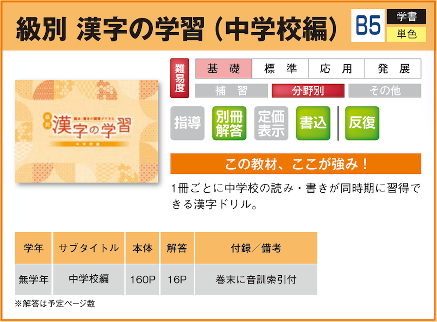 級別 漢字の学習(中学校編) 【教材詳細】 |
