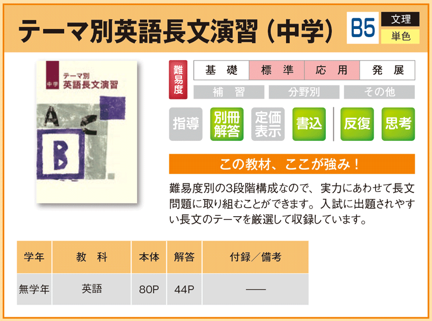 テーマ別英語長文演習(中学) 【教材詳細】 |