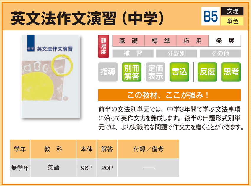 英文法作文演習(中学) 【教材詳細】 |