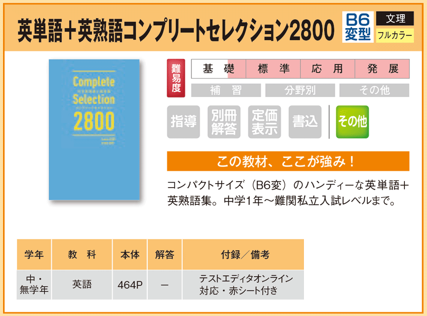 英単語+英熟語コンプリートセレクション2800 【教材詳細】 |
