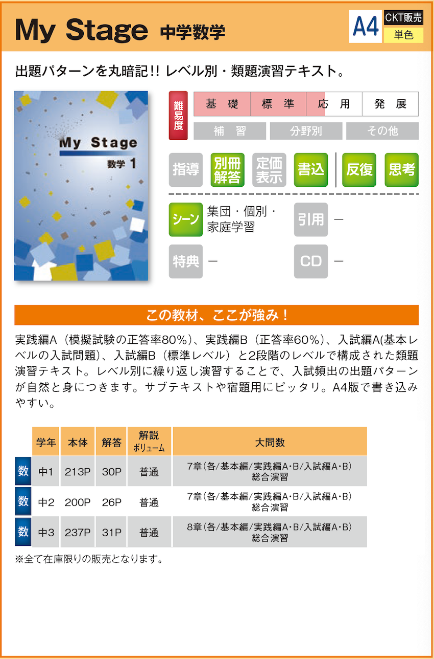 My Stage 中学数学 【教材詳細】 |
