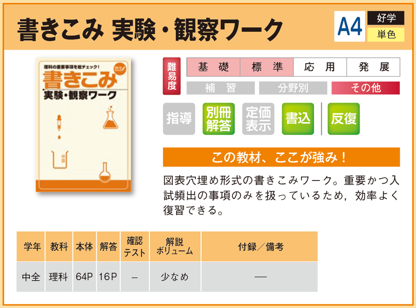 書きこみ 実験・観察ワーク 【教材詳細】 |