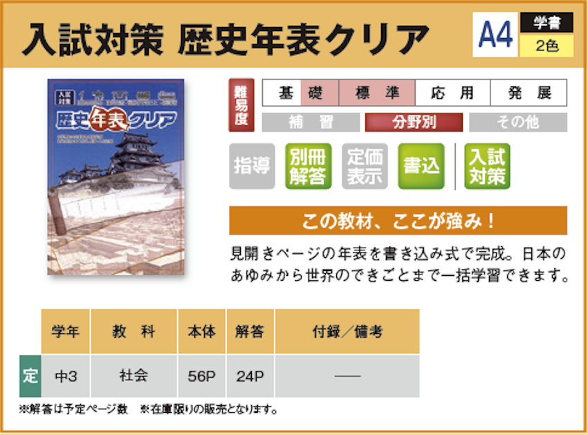 入試対策 歴史年表クリア 【教材詳細】 |