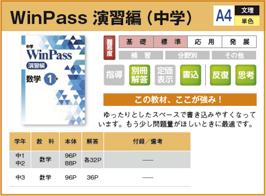 WinPass 演習編(中学) 【教材詳細】 |