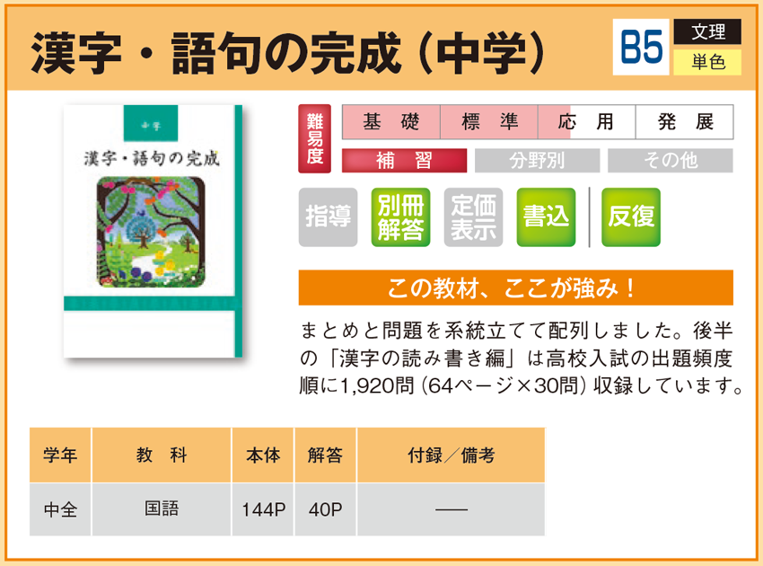 漢字・語句の完成(中学) 【教材詳細】 |