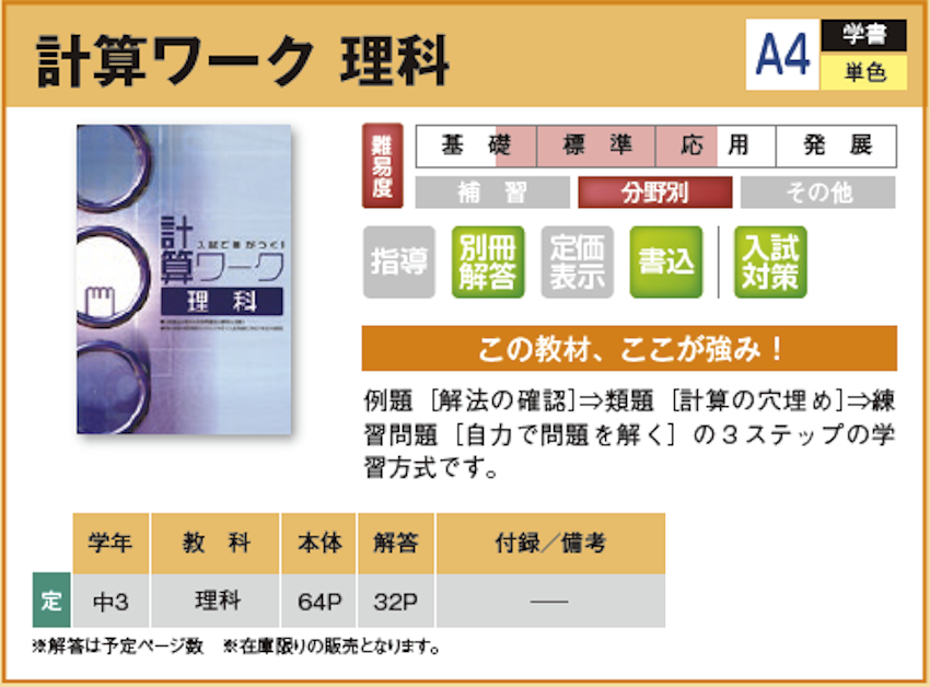 計算ワーク 理科 【教材詳細】 |