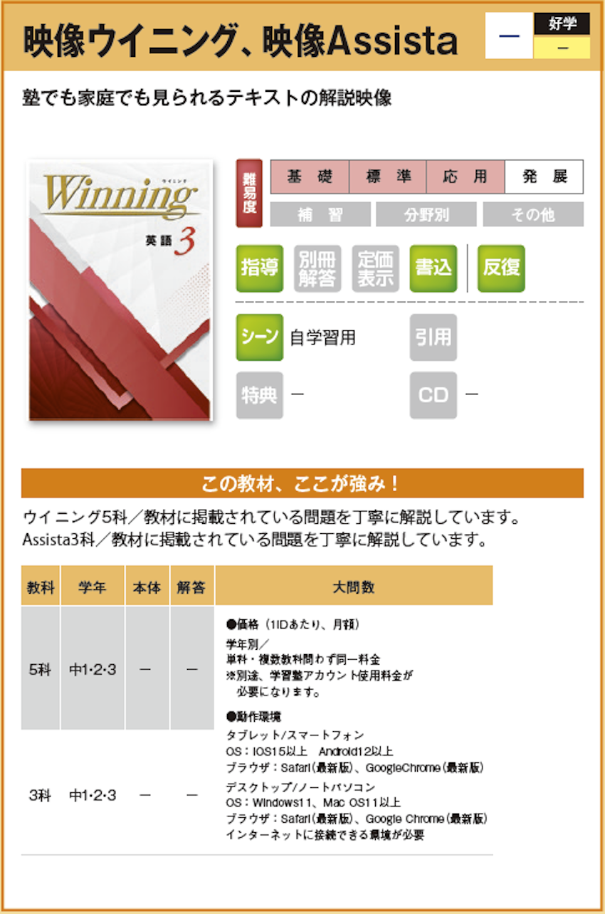 映像ウイニング、映像Assista 【教材詳細】 |