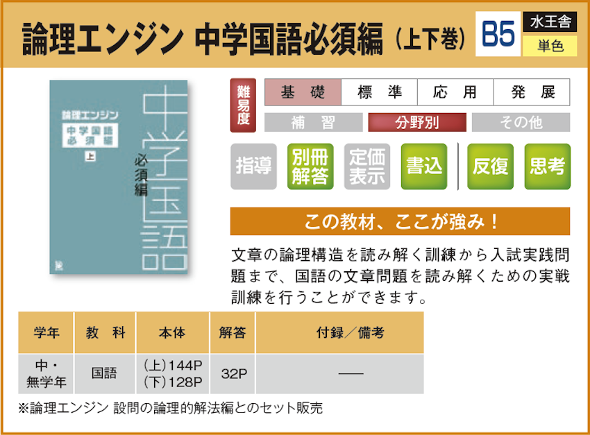 論理エンジン 中学国語必須編(上下巻) 【教材詳細】 |